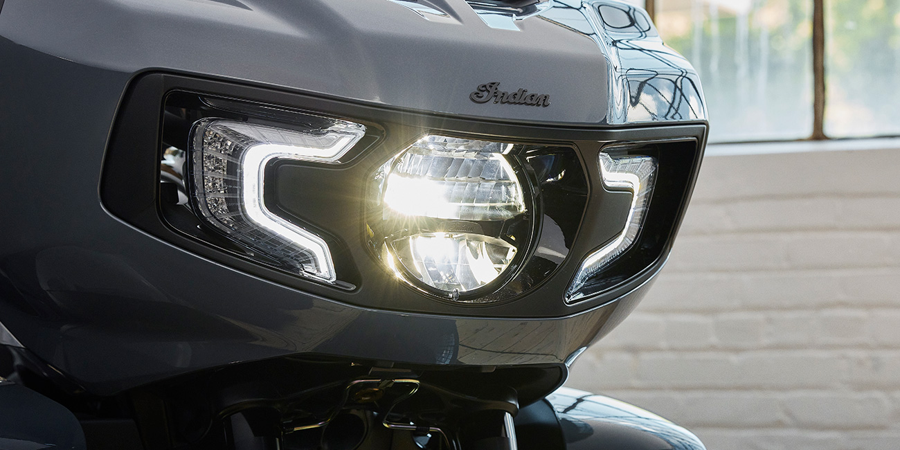 Az agresszív futófények és a LED-es fényszóró mellett prémium minőségű, az alsó lámpatestekbe integrált távolsági fényekkel.