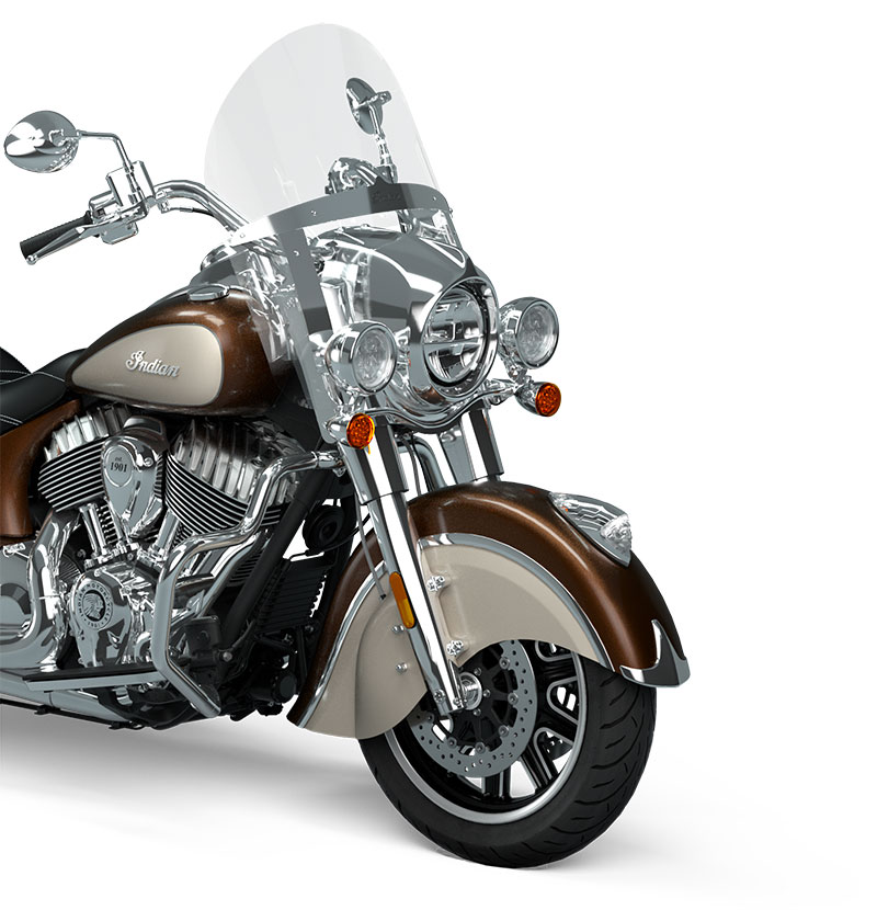 | Alapfelszereltség | Gyorsan kioldható szélvédő; valódi bőrülés; távirányítóval zárható kemény nyeregtáskák, autópálya rudak; guminyomás-ellenőrzés; fénysorompó; választható menetmódok, ABS; tempomat; kulcs nélküli indítás; Indian® Script Tank jelvény; 12v töltőport |